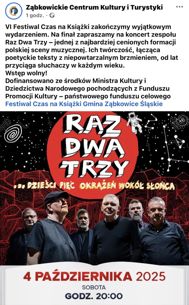 Ząbkowice Śląskie: festiwal czas na książki i koncert Raz, Dwa, Trzy