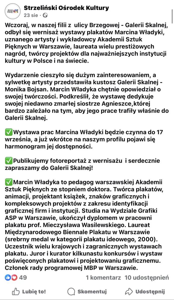 Mowa o Marcinie Władyce, znanemu także w Strzelinie i Ziębicach, autorze wielu prac związanych m.in. z techniką plakatu.