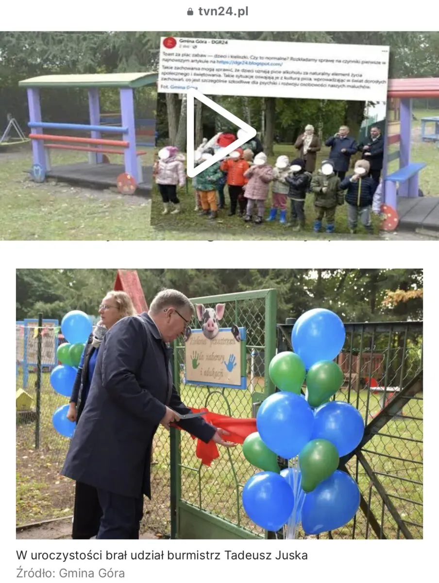 Dolny Śląsk: Otwarcie placu zabaw. Niefortunny toast z udziałem dzieci