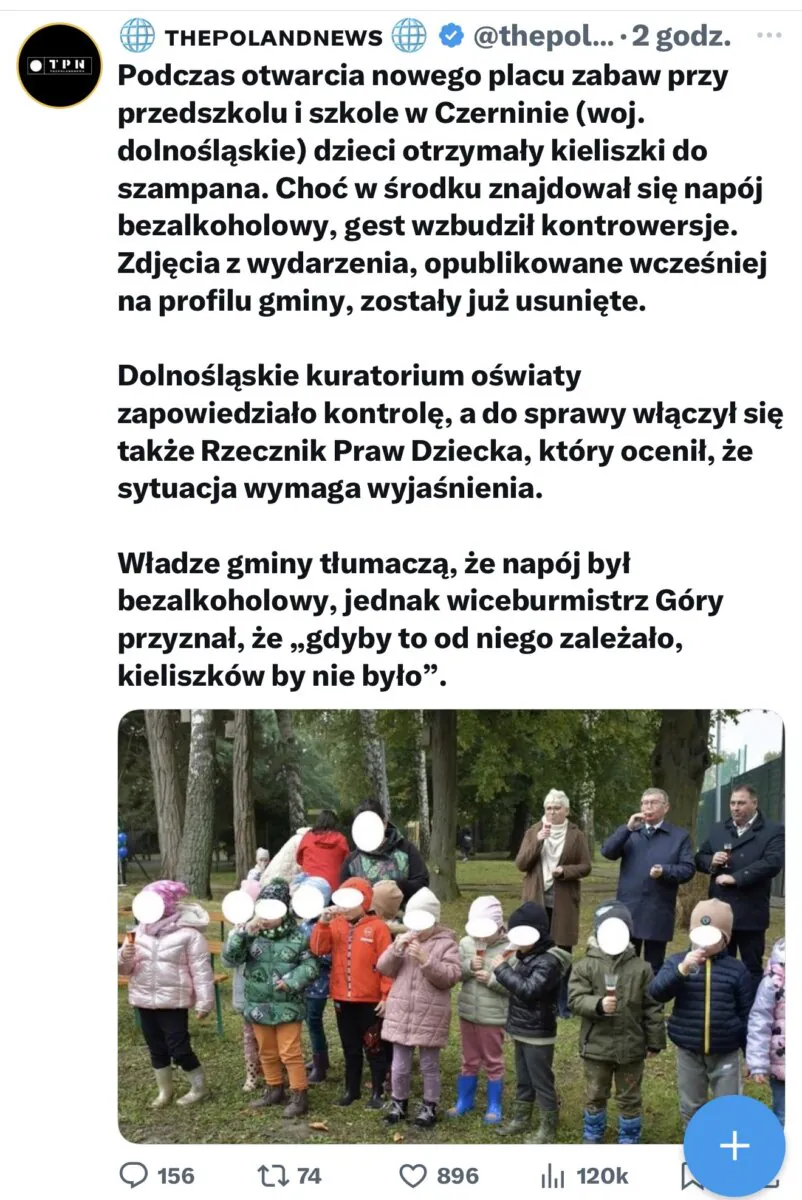 W Czerninie, wsi w gminie Góra na Dolnym Śląsku, doszło do kontrowersyjnego wydarzenia podczas otwarcia nowego placu zabaw przy przedszkolu. Zdarzenie miało miejsce niedawno i szybko zyskało rozgłos w mediach lokalnych i ogólnopolskich.