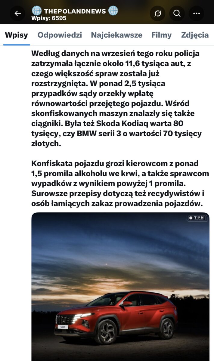 – Efekt prewencyjny: W pierwszych 8 miesiącach 2024 r. (tuż po wejściu przepisów) pijani kierowcy spowodowali 805 wypadków (spadek o 123 r/r), z 100 ofiarami śmiertelnymi (spadek o 56). To wskazuje na szybki wpływ konfiskaty – kierowcy, świadomi ryzyka utraty pojazdu, rezygnują z jazdy po alkoholu.
