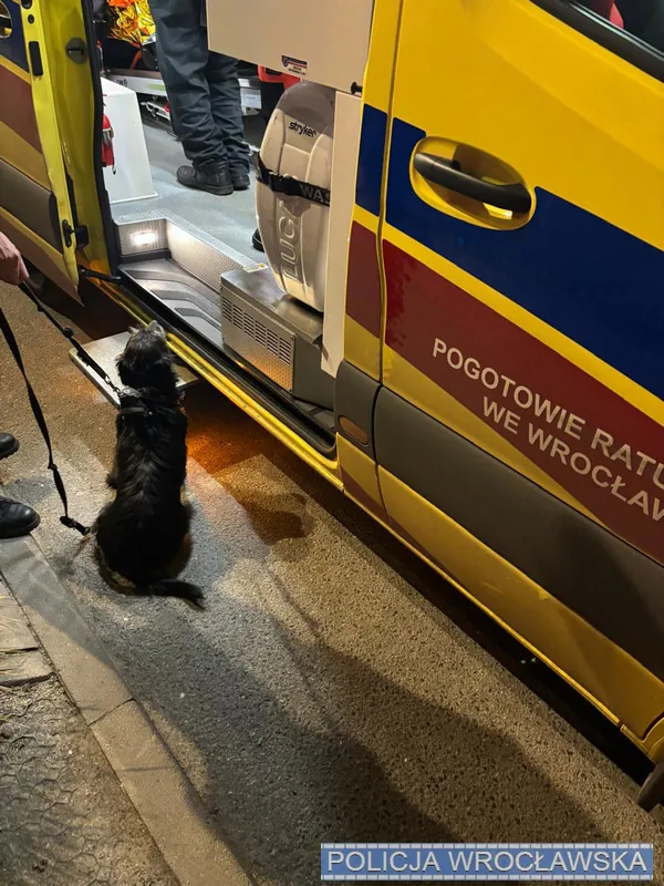 Gdy kobieta chwyciła za smycz, zwierzę natychmiast poprowadziło ją w stronę zarośli, gdzie leżał jego pan. To właśnie dzięki jego zachowaniu możliwe było szybkie odnalezienie seniora i udzielenie mu pomocy.