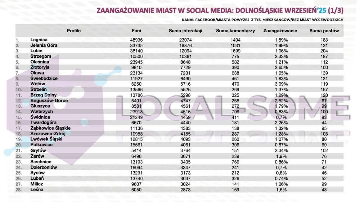 ❤ Największa liczba reakcji, komentarzy i udostępnień: Legnica – 23 074 interakcji