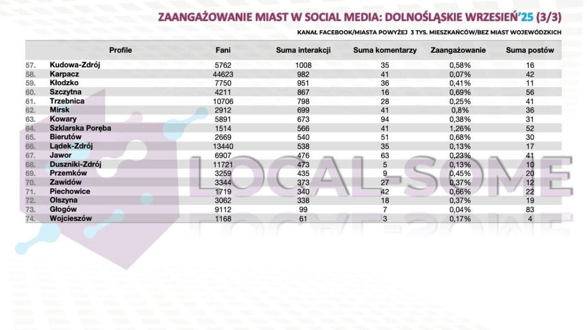 📊 Analiza Facebooka miast województwa dolnośląskiego – wrzesień 2025
