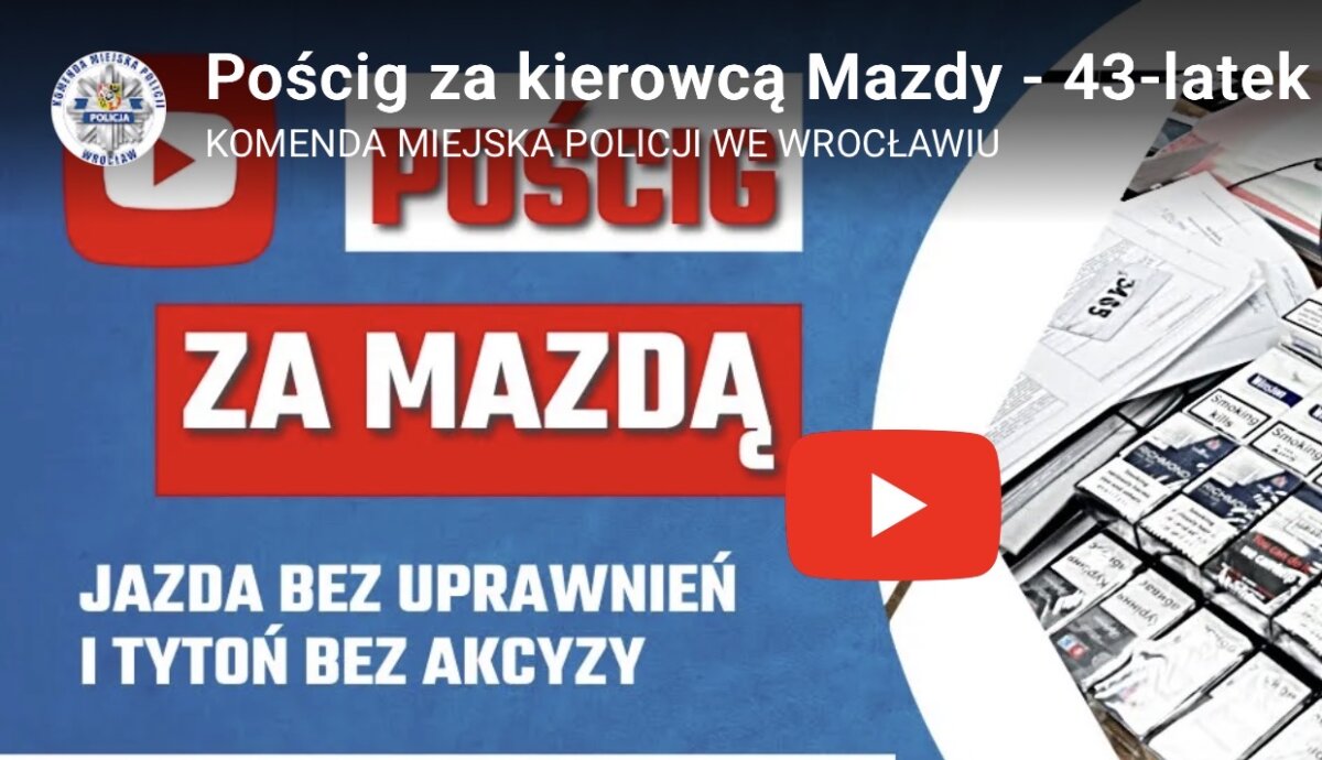 Policjanci Wydziału Ruchu Drogowego Komendy Miejskiej Policji we Wrocławiu podjęli pościg za kierowcą pojazdu marki Mazda, który nie zatrzymał się do kontroli drogowej.