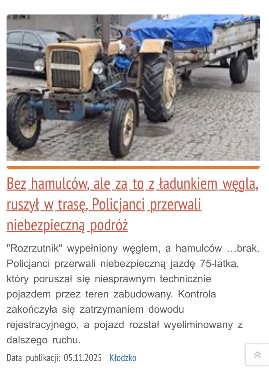 Policjanci przerwali niebezpieczną jazdę 75-latka, który poruszał się niesprawnym technicznie pojazdem przez teren zabudowany. Kontrola zakończyła się zatrzymaniem dowodu rejestracyjnego, a pojazd rozstał wyeliminowany z dalszego ruchu.