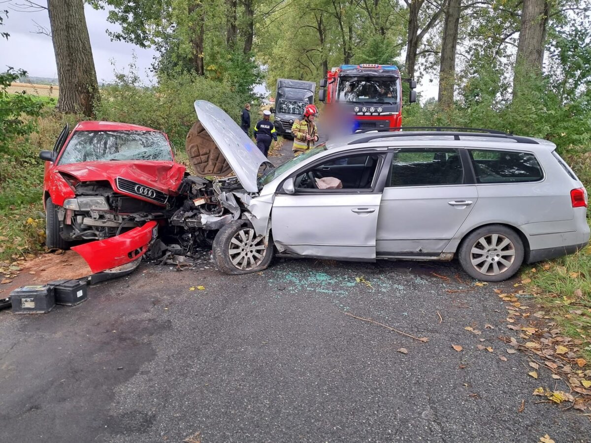 Policjanci pracujący na miejscu zdarzenia ustalili, że kierujący Volkswagenem, jadąc na łuku drogi, zjechał na przeciwległy pas ruchu, doprowadzając do zderzenia z prawidłowo jadącym samochodem Audi, którym kierowała 49-letnia mieszkanka powiatu nyskiego. Kobieta podróżowała z pasażerem.