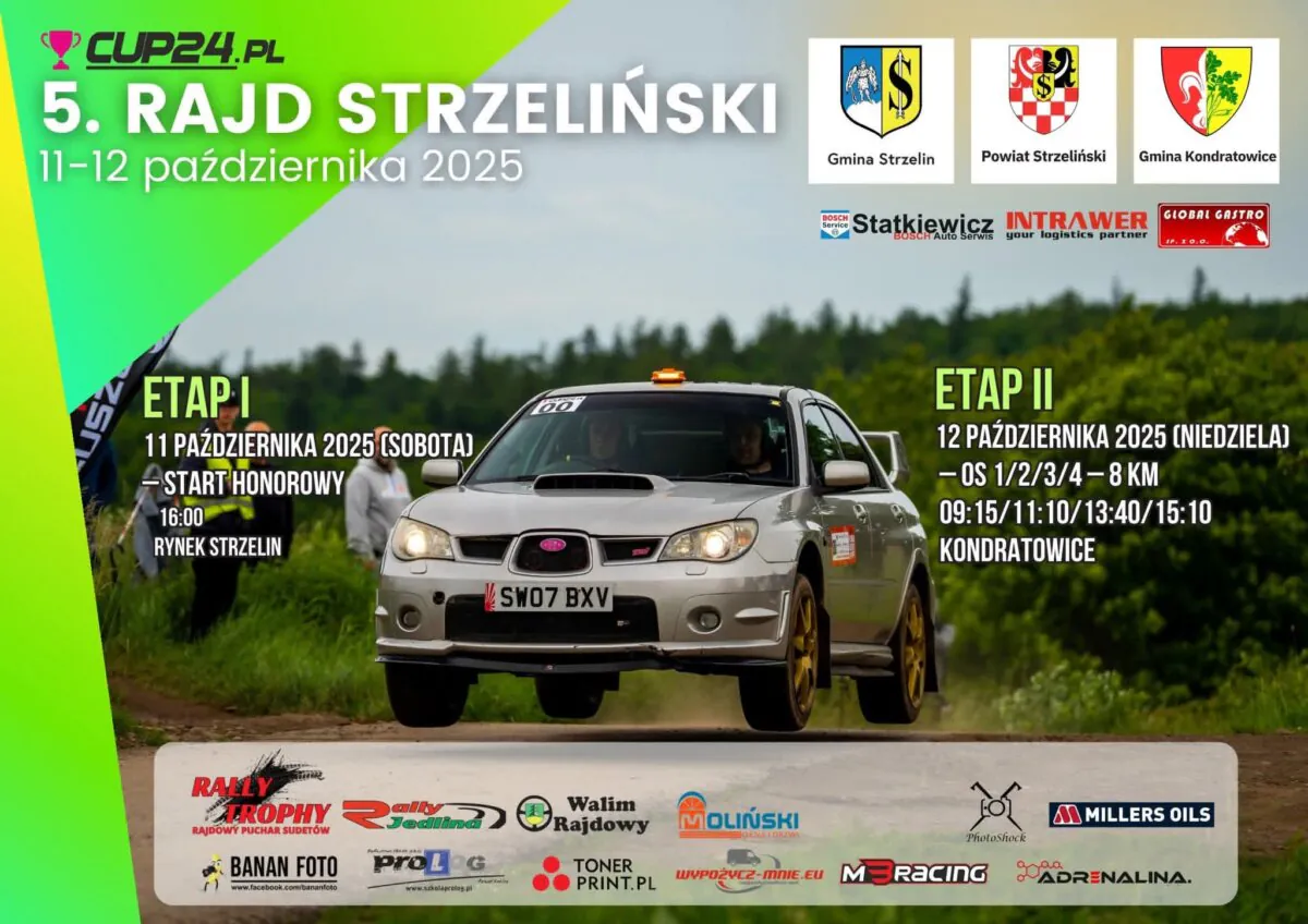 Już w najbliższy weekend, 11–12 października 2025 r., odbędzie się 5. Rajd Strzeliński – wydarzenie, które przyciąga miłośników motoryzacji i sportowych emocji!