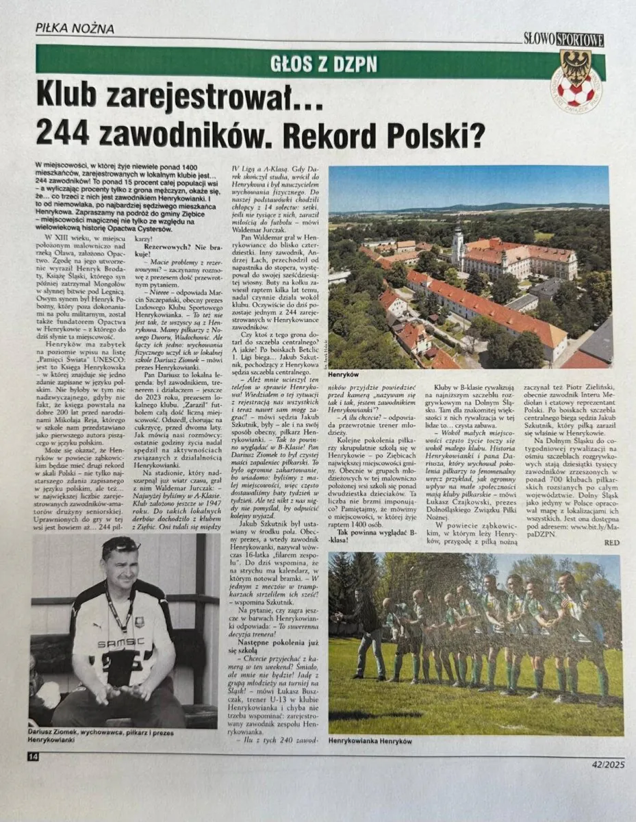 – Henryków zyskuje miano „najbardziej piłkarskiej wsi w Polsce” – obok Księgi Henrykowskiej to drugi „rekord” tej miejscowości.