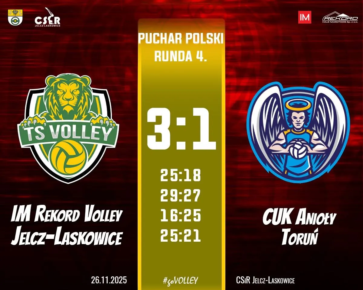 – Wygrywamy z trzecim zespołem tabeli PLS 1 Ligi CUK Anioły Toruń 3:1. Tym samym awansujemy do 5. rundy Pucharu Polski w której zagramy z wiceliderem PLS 1 Ligi Stal Nysa.