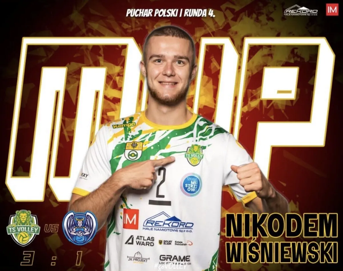 Najlepszym zawodnikiem meczu 4. runda Pucharu Polski – IM Rekord Volley Jelcz-Laskowice vs CUK Anioły Toruń (3:1) został wybrany rozgrywający IM Rekord Volley Jelcz-Laskowice Nikodem Wiśniewski