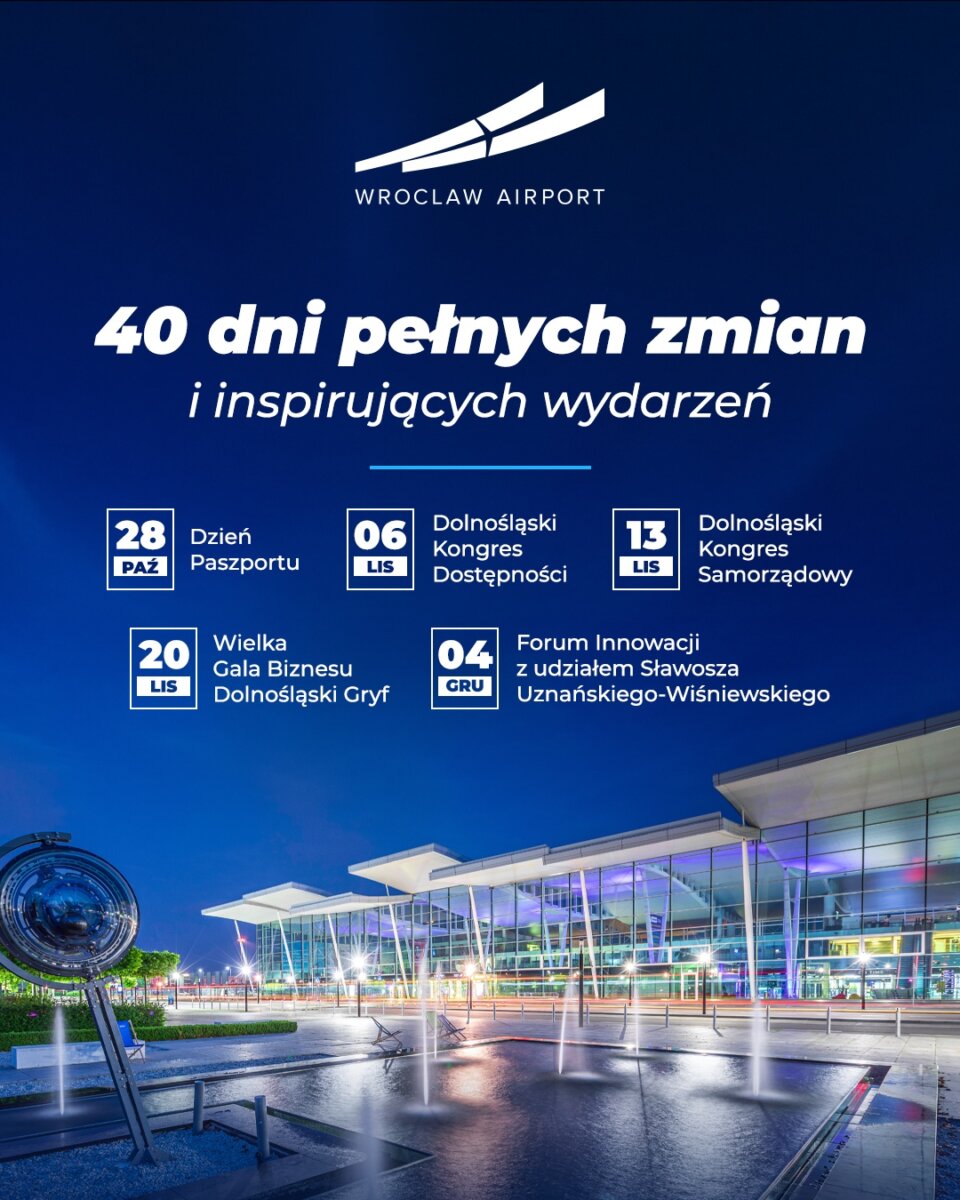 Informujemy, że w dniach 26 października – 4 grudnia 2025 roku wszystkie operacje lotnicze w Porcie Lotniczym Wrocław będą czasowo wstrzymane. Powodem jest realizacja największej inwestycji w historii naszego portu lotniczego, której celem jest dalsza poprawa komfortu i bezpieczeństwa pasażerów, a także dostosowanie infrastruktury do rosnącego ruchu lotniczego.
